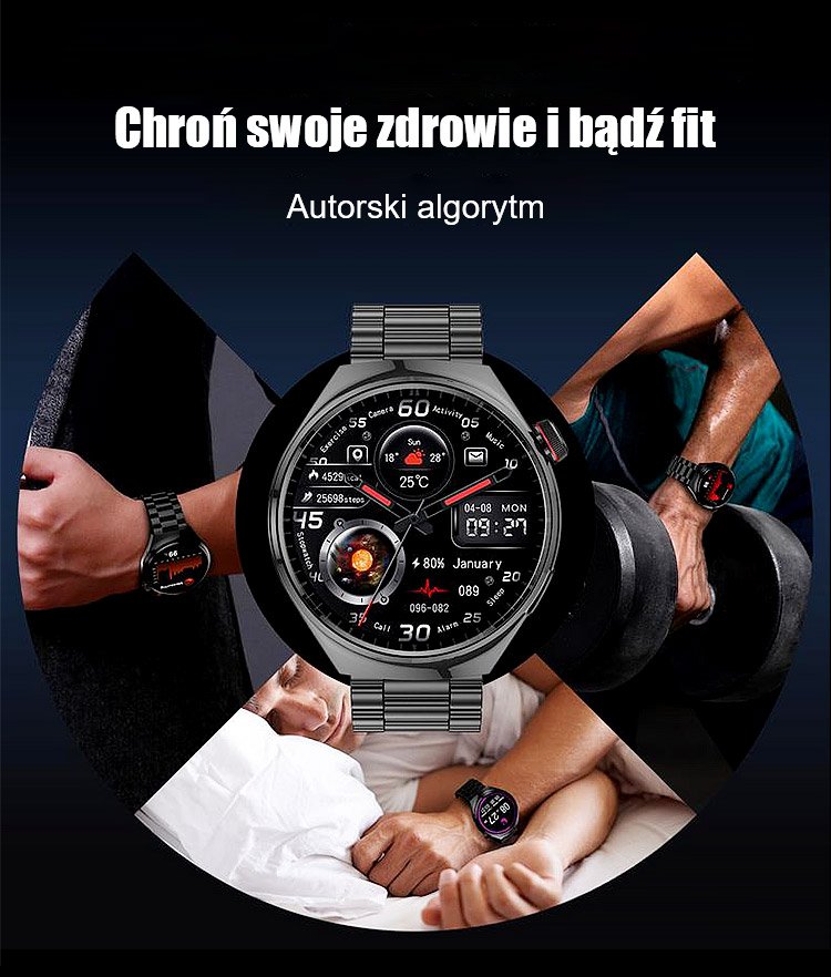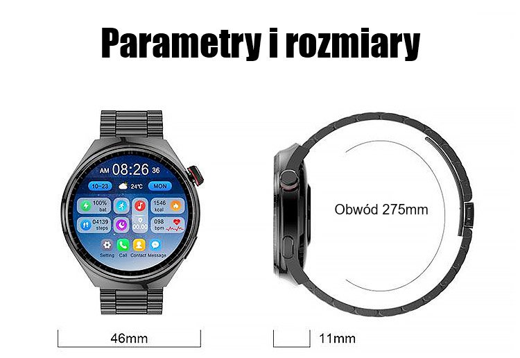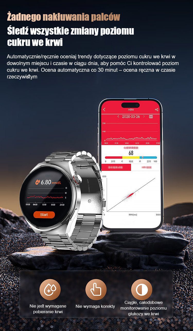 Zegarek do pomiaru poziomu cukru we krwi ze stalowym paskiem